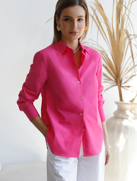 Совместные покупки Каменск-Уральский Женская одежда Блузки, рубашки — 09.04 Vilatte Блузка из легкого хлопкового поплина D29.268 фуксия