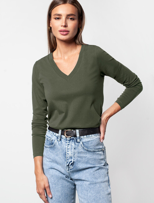 Совместные покупки Каменск-Уральский Женская одежда Джемперы, свитеры, водолазки — 09.04 Vilatte Джемпер из премиального хлопка с эластаном D49.958 темно-оливковы