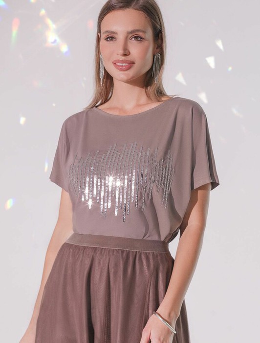 Совместные покупки Каменск-Уральский Женская одежда Футболки — 21.04 Vilatte Футболка D49.133 кофейный_stripes
