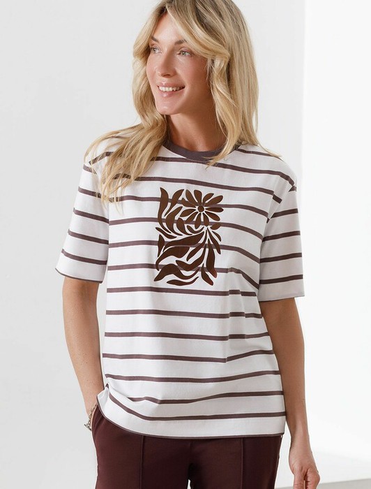 Совместные покупки Каменск-Уральский Женская одежда Футболки — 09.04 Vilatte Футболка D49.145 белый-кофе_цветок