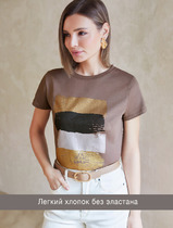 Футболка выполнена из трикотажа в широкий рубчик. Модель с квадратным вырезом дополнена декоративными пуговицами.  Эластичный хлопковый трикотаж сидит по фигуре, не сковывает движений и очень комфортный в носке. Фактура вертикальных полос визуально стройнит и вытягивает силуэт. Базовое изделие хорошо впишется в любой гардероб. Идеально подходит для многослойных образов.