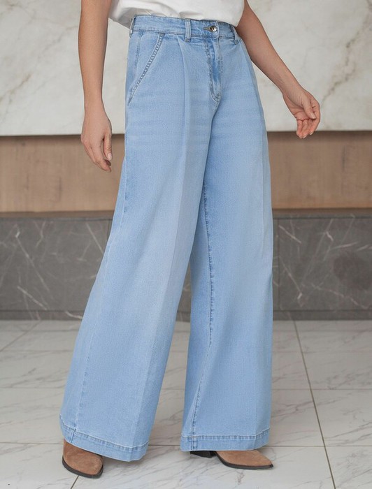 Совместные покупки Каменск-Уральский Женская одежда Джинсы — 09.04 Vilatte Широкие джинсы с защипами из эластичного денима D54.307 голубой