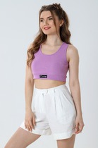 Топ с V-вырезом выполнен из премиального хлопка. Модель дополнена регулируемыми бретелями, позволяющими носить изделие на нужном уровне. Эластичный материал гарантирует комфорт и формоустойчивость. Из украшений металлический логотип бренда.