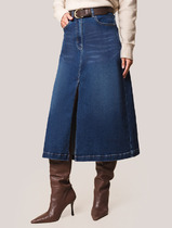 — 09.04 Vilatte Юбка А-силуэта из эластичного денима D56.118 голубой
