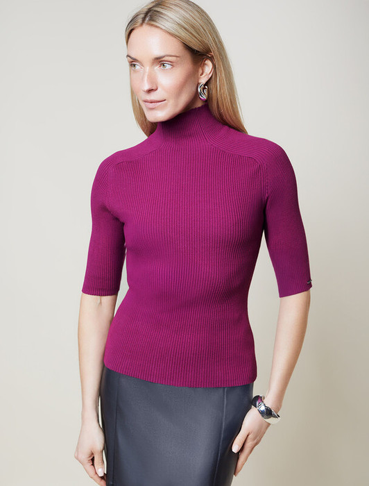 Совместные покупки Каменск-Уральский Женская одежда Джемперы, свитеры, водолазки — 09.04 Vilatte Водолазка тонкой вязки в рубчик из хлопка с нейлоном D34.198 пурп
