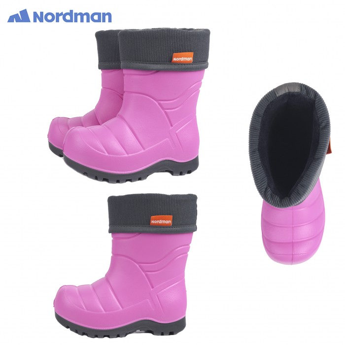 Детские сапоги из ЭВА Nordman Flash не пропускают влагу, очень легкие и теплые. Флисовый утеплитель легко вынимается. Его можно сушить и стирать.