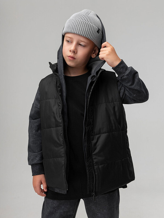 Стильный жилет на молнии, по бокам прорезные карманы, без капюшона. Материал верха: Дюспо 100% полиэстер, утеплитель Hetta micro 150 г/кв.м, подкладочный материал кулирная гладь 100% хлопок