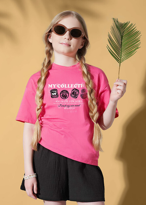 Стильная футболка оверсайз из натурального 100 % хлопка — комфорт и мода в каждом движении. Затяжка на кулиску сбоку позволяет регулировать силуэт, а стильный принт на переде добавляет изюминку. Идеальный вариант для юных модниц!