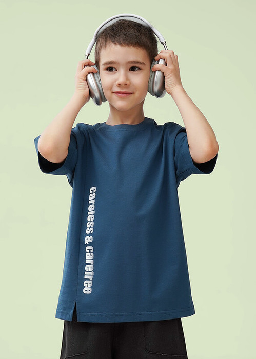 Футболка из 100% хлопка для мальчика.Дизайн подчёркивает вертикальный рез по переду,создающий элегантный силуэт.Дополняет образ актуальный принт. Модель сочетает комфорт натуральной ткани и современный крой- идеальный вариант для повседневного гардероба.