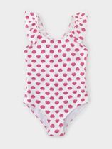 Сплошной купальник с ярким принтом. Узкие бретели отделаны оборкой. Впереди на подкладе.