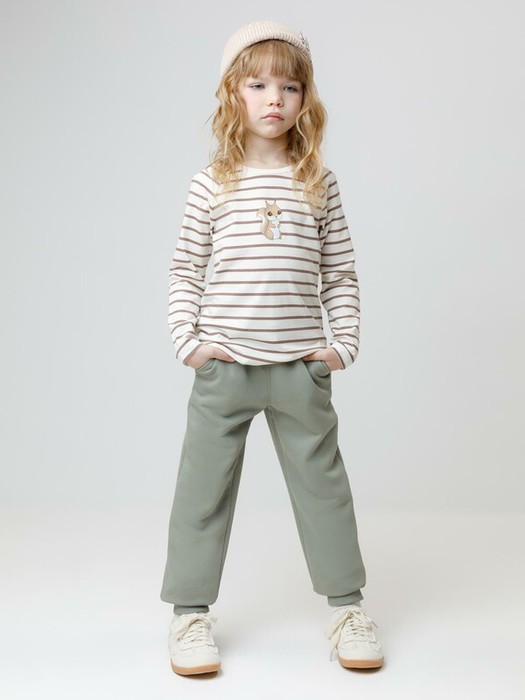 Брюки для девочки из мягкого футера с начёсом. Модель с эластичным поясом на резинке регулируется по ширине с помощью шнурка. Низ на манжетах. Два кармана по бокам. Все трикотажные полотна производятся в соответствии с нормами швейцарского сертификата ЭкоТекс.