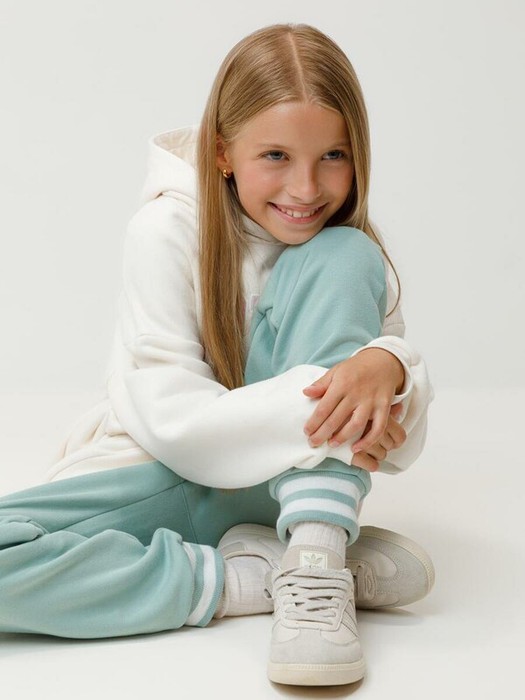 Брюки для девочки из мягкого петельчатого трикотажа. В составе 80% натурального хлопка и 20% полиэстера, при этом полиэстер ввязан внутрь по особой технологии и не соприкасается с кожей. Эластичный пояс на резинке регулируется по ширине с помощью шнурка, по бокам два удобных кармана, внизу эластичные манжеты.