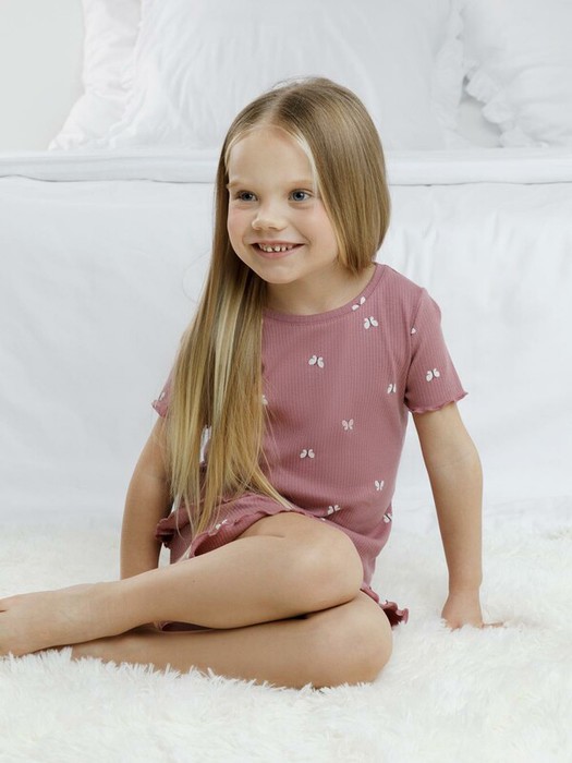 Трикотажная пижама в рубчик из натурального хлопка. Футболка с короткими втачными рукавами и шорты с эластичной резинкой в поясе. Оригинальная набивка выполнена из стойких текстильных гипоаллергенных красителей. Изделие сохраняет цвет и форму после многократных стирок. Все трикотажные полотна производятся в соответсвии с нормами швейцарского сертификата ЭкоТекс.