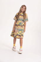 Платье для девочки с длинными рукавами и воротничком. Изготовлено из мягкого петельчатого трикотажа и украшено оборкой из гладкого материала супрем. Спереди застёжка на короткую молнию. Платье сохраняет форму и стойкий цвет после многочисленных стирок и идеально подходит на каждый день. Оригинальный принт выполнен из стойких текстильных гипоаллергенных красителей. Все трикотажные полотна производятся в соответствии с нормами швейцарского сертификата ЭкоТекс.