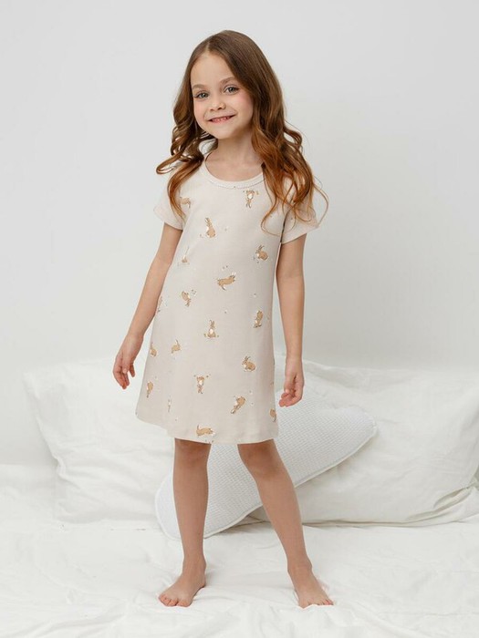 12.04 Crockid сорочка для дев К 1156/бежевый,кролики и цветы