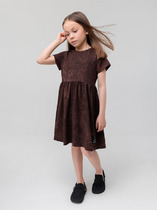 Платье полуприлегающего силуэта с отрезной юбкой. Длина выше колена. Горловина круглая, окантована бейкой из основного полотна. Рукав втачной длинный. Низ рукава обработан на 2-х игольной плоскошовной машине. Юбка трехслойная на сборке. Верхние два слоя из трикотажного полотна сетки, подкладка из трикотажного кулирного полотна. Пояс из жаккардовой тесьмы