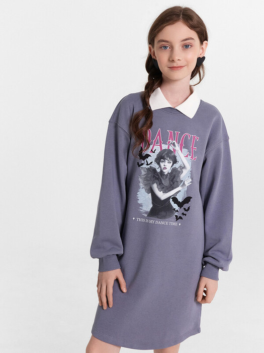 Платье свободного силуэта. Перед и спинка цельнокроеные. Горловина круглой формы c окантовкой из трикотажного полотна рибаны. В горловину втачан вязаный воротник, шов втачивания закрыт х/б тесьмой. Рукава длинные, втачные. Линия плеча спущена. По низу рукавов притачные манжеты из трикотажного полотна рибаны. Низ изделия фигурный, обработан на 2-х игольной