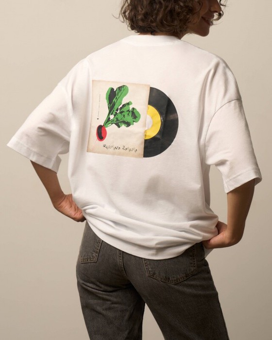 Футболка свободного силуэта. Спущенное плечо. Горловина из двух деталей, из рибаны.
