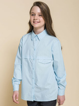 Школьная блузка классического полуприлегающего силуэта с отложным воротником для девочки. Блузка в школу с рельефами по переду и спинке не сковывает движений ребёнка. Перед украшают застроченные вдоль центральной