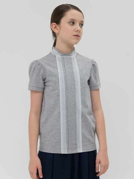 Кружево по бокам центральной складки спереди и по воротнику, а также лёгкая сборка рукава вносят немного романтики в классический стиль.