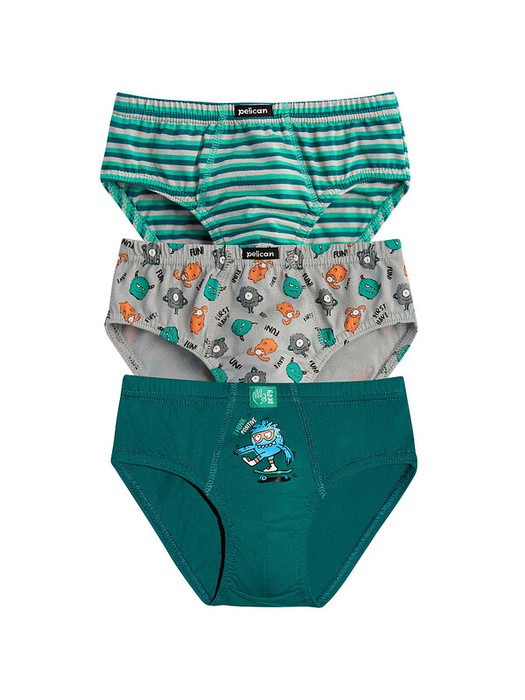 22.04 Pelican набор трусов для мальчиков BULB3376(3) Изумрудный/изумрудный/серый