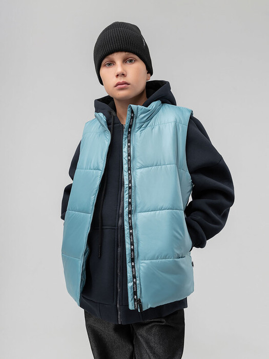 Стильный жилет для детей школьного возраста. Материал FITSYSTEM имеет специальное водонепроницаемое и водоотталкивающее покрытие и пропитку, защищает от дождя, влаги и ветра. Материал верха: Fitsystem Style 100% полиэстер, утеплитель Hetta micro premium S4-K 150 г/кв.м, подкладочный материал кулирная гладь 100% хлопок