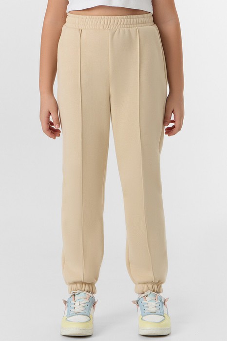 Брюки из трикотажного футера с подчесом. Силуэт свободный, на передних половинках обработаны карманы с наклонным входом. Пояс с эластичной тесьмой внутри. Низ штанин – с эластичной тесьмой, отвернут. Отличная модель для девочки!