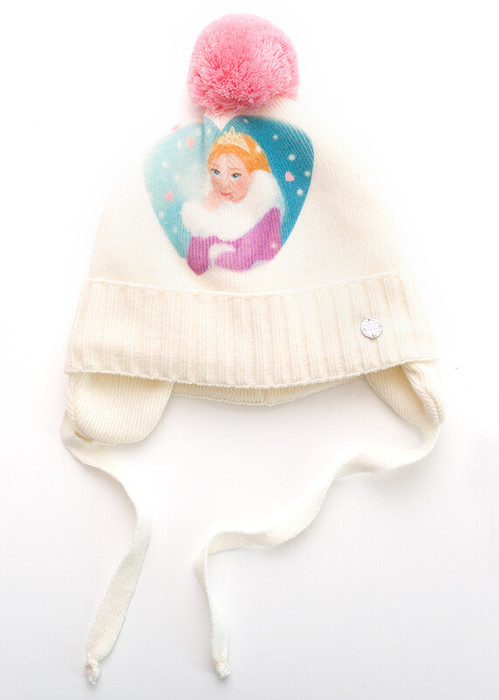 Шапка с синтепоновым утеплителем, который имеет отличные теплоизоляционные характеристики. У модели: подкройные ушки, хлопковый гипоаллергенный подклад, полноцветный принт "принцесса" и контрастный помпон
