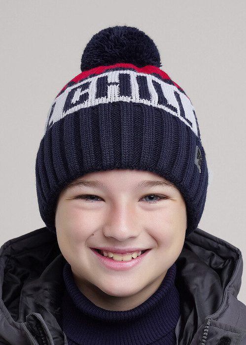13.01 Clever Шапка детская для мальчика CLE 454508ап флис т.синий/красный