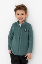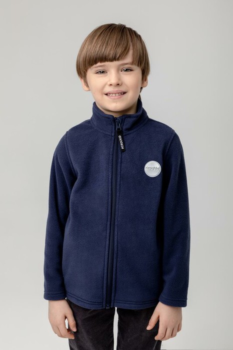 Флисовая куртка для мальчика. У изделия высокий воротник, предусмотрена защита шеи и подбородка, по бокам карманы. Спереди светоотражающая нашивка. Куртка сохраняет цвет и форму после многократных стирок.