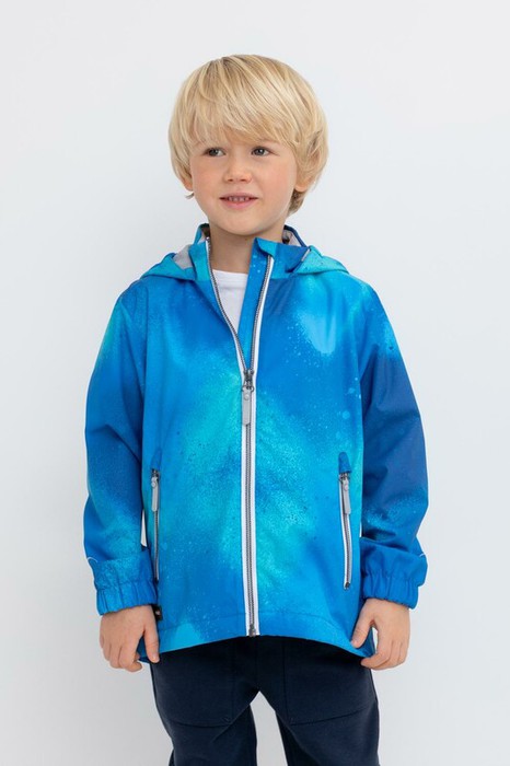 Ветровка для мальчика из мембранной ткани с дополнительной тефлоновой обработкой.  Верхняя мембранная ткань 1000/1000 с тефлоновым покрытием отталкивает воду и грязь и обладает «дышащими» свойствами. Подкладка выполнена из 100% полиэстера. У изделия предусмотрена защита подбородка. Несъемный капюшон регулируется с помощью эластичного шнура со стопперами. Низ рукавов имеет эластичную резинку для лучшего прилегания. Во всех изделиях верхнего ассортимента для безопасности ребенка предусмотрены светоотражающие элементы