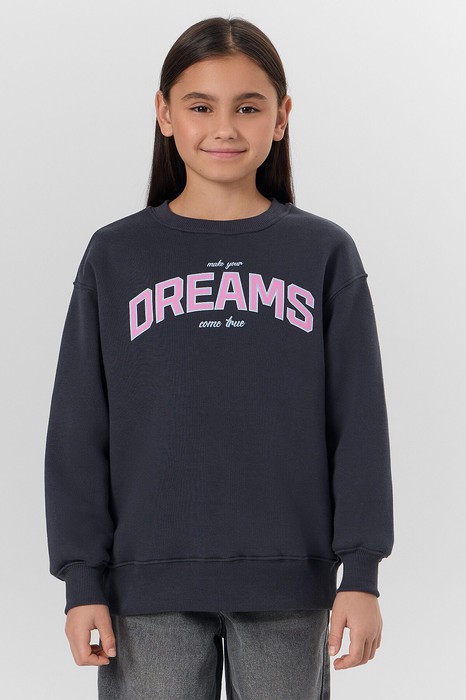 Джемпер свободного силуэта. Рукава длинные, втачные. Линия плеча спущена. Перед и спинка цельнокроенные. Горловина круглой формы обработана обтачкой из рибаны. Шов притачивания обтачки распошит. По низу рукавов и джемпера притачены манжеты и пояс из рибаны.