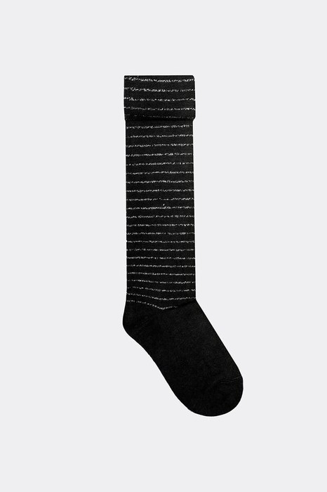 Колготки гладкие с рисунком в виде тонкой поперечной полоски с люрексом.