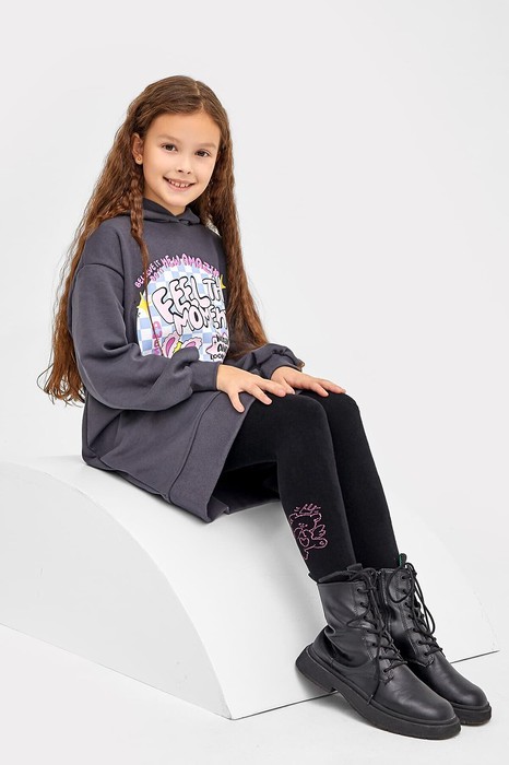 Колготки гладкие с плюшевым следом и рисунком в виде надписей