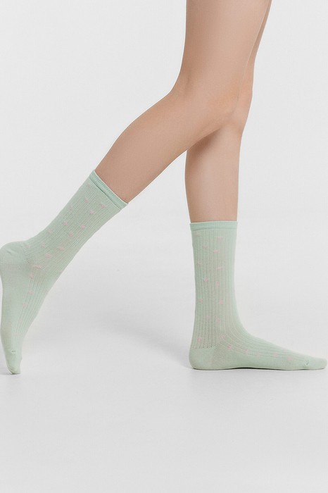 рис.3165 Детские классические носки выполненных перекидным переплетением (лапша) с рисунком в виде мелких сердечек.