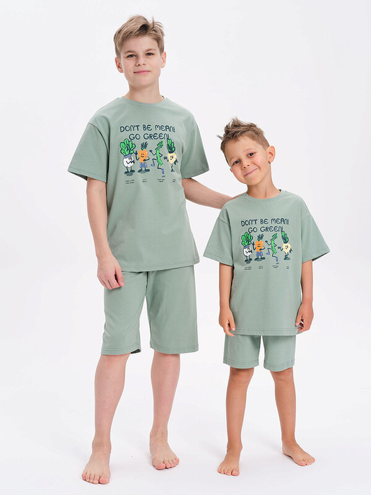 Стильная и уютная пижама для мальчика. В составе ткани 100% хлопка — идеально для детской одежды! Модель приятна на ощупь, прекрасно пропускает воздух, позволяя коже ребёнка дышать. При этом в пижаме из хлопка ребёнку будет уютно, даже если он сбросит одеяло. Всё это обеспечивает комфортный и качественный сон. Футболка и удлинённые шорты, плечо спущено, рукава широкие и свободные — пижама на мальчика очень удобна для сна. Широкая и мягкая резинка в поясе не перекручивается и не давит. Отделка горловины из эластичной рибаны — она не растягивается, ребёнку удобно надевать и снимать пижаму. По переду забавный принт — порадует любого мальчишку! Принт мягкий и эластичный, отлично переносит многочисленные стирки. Хлопковый комплект идеален для сна и отдыха дома — прекрасный выбор для вашего ребёнка! Пижама с шортами для мальчика подходит для круглогодичного использования. Домашний комплект — замечательный подарок сыну, внуку, брату на любой праздник. Выбирайте нужный размер по таблице размеров на фото. Цвет товара на экране вашего устройства может отличаться от цвета изделия вживую.