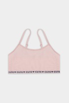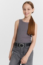 Топ для девочек прилегающего силуэта. Горловина круглая. Проймы и горловина окантованы бейкой из основного полотна. Низ изделия обработан швом в подгибку.