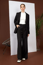 Эти женские прямые брюки — безупречное сочетание комфорта и элегантности! Свободный силуэт и средняя посадка обеспечивают удобную посадку, а эластичная талия адаптируется к фигуре, гарантируя максимальное удобство. Благодаря фактурному материалу с эластичными искусственными волокнами модель хорошо тянется, оставаясь легкой и приятной на ощупь. Нижний срез аккуратно обработан швом вподгибку, что повышает долговечность изделия. Этот стильный вариант идеально подходит для создания универсальных образов. Дополните брюки подходящим топом из этой же коллекции — и получите гармоничный и продуманный комплект, который подчеркнет ваш стиль и индивидуальность! Прекрасный выбор для тех, кто ценит удобство и актуальный дизайн.