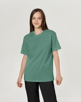Boyfriend крой, круглый вырез. Втачной рукав. Горловина из рибаны. отстрочена по переду. Плечевые швы и шов горловины спинки укреплены бейкой из основной ткани.