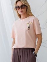 Boyfriend крой, укрепление по горловине спинки, круглый вырез. Горловина рибана. Отстрочка по горловине переда