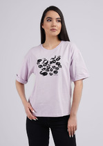Футболка полупрелигающего силуэта, втачной рукав, горловина окантована рибаной