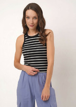 Майка из кашкорсе, облегающая с отстроченными рельефами. Горловина и проймы окантованы основной тканью