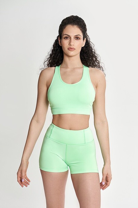 Топ спортивный из эластичного материала бифлекса. Лиф полочки трехслойный, внутренний слой из сетки, вставная чашка. По низу пояс с резинкой внутри.