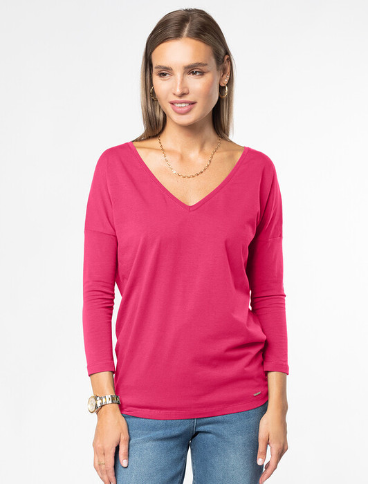 Совместные покупки Каменск-Уральский Женская одежда Джемперы, свитеры, водолазки — 21.04 Vilatte Джемпер из премиального хлопка с эластаном D49.957 вива_маджента