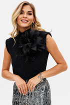 Детали топа состоят из двух частей обтачные с перекрутом по центру драпируются на груди.