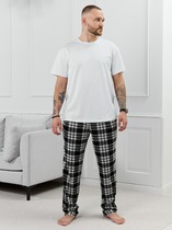 Брюки мужские на манжете из трикотажного плотного полотна с регулируемой талией. Функциональность модели придают боковые карманы и внутренний шнур на талии. Изделие дополнено дизайнерским принтом. Брюки эргономичные и удобные.