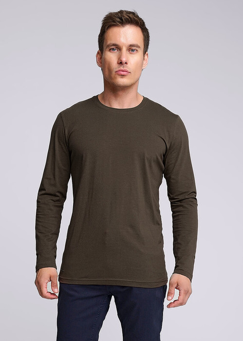 Джемпер прямого силуэта, длинный рукав, круглый вырез горловины обработан обтачкой. Изделие выполнено из натурального полотна с добавлением эластана для удобства ношения.