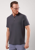 Футболка-поло с воротником-стойка и функциональной планкой на пуговицах, из трикотажного полотна ""вафля"". Изделие дополнено имиджевой фурнитурой и отделочными строчками. Простая и удобная модель, идеально подходящая для повседневного гардероба.