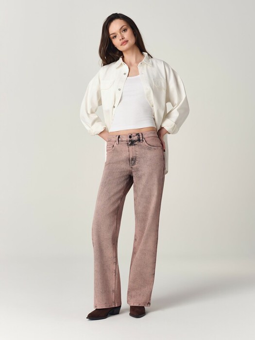 Джинсы straight из плотного денима двойного крашения с эффектом мятости – это современная модель, гармонично объединяющая контрасты: нежный пыльно-розовый оттенок дарит яркость и чувственность, а глубокий чёрный подчёркивает фактуру денима, добавляя модели характер. Идеальная основа для создания дерзких и выразительных образов.
