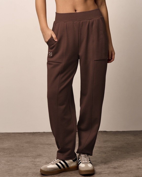 Брюки-бананы. Передние половинки брюк со швом. Накладные карманы по передним боковым половинкам брюк,между швами. Пояс из основной ткани, отстрочен.